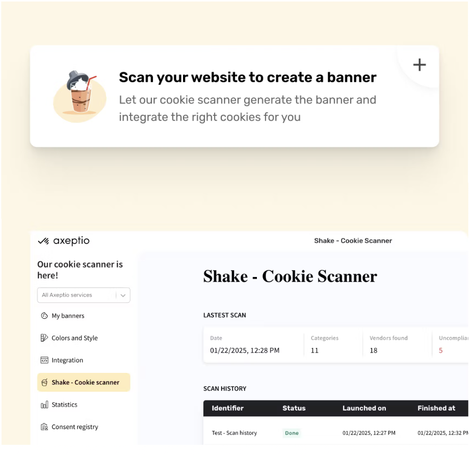 Une nouveauté stratégique. Shake est un outil d’audit automatisé qui scanne le site pour détecter tous les cookies, scripts et services utilisés. Il les classe par catégorie, indique lesquels nécessitent un consentement et génère un rapport de conformité complet.